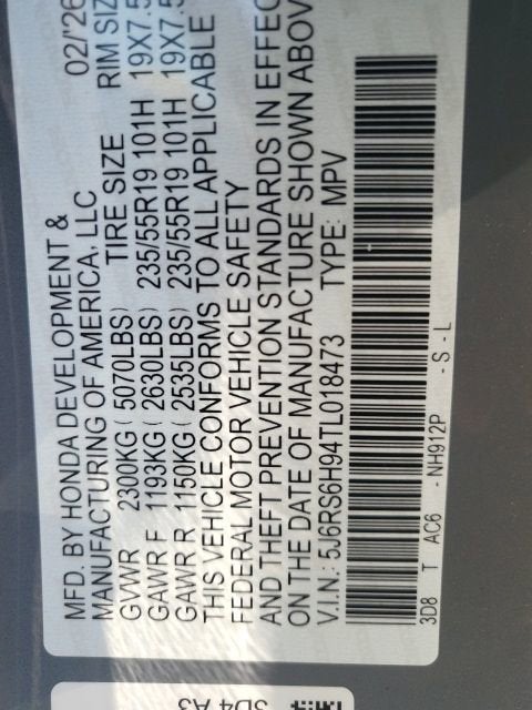 - Tires: 235/55R19 101H All-Season