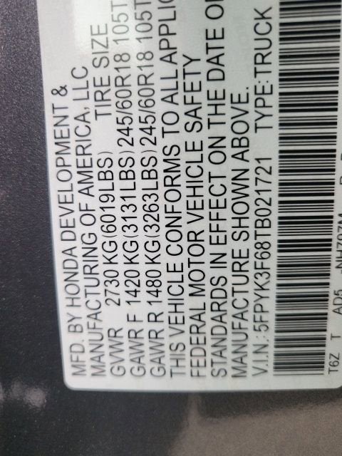 VIN: 5FPYK3F68TB021721